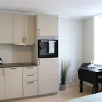 This 20 m^2 apartment offers a fully equipped kitchen with a fridge, an oven, and glassware, along with coffee/tea making facilities. Hogskoleringen bus stop is nearly a 5-minute walk away.